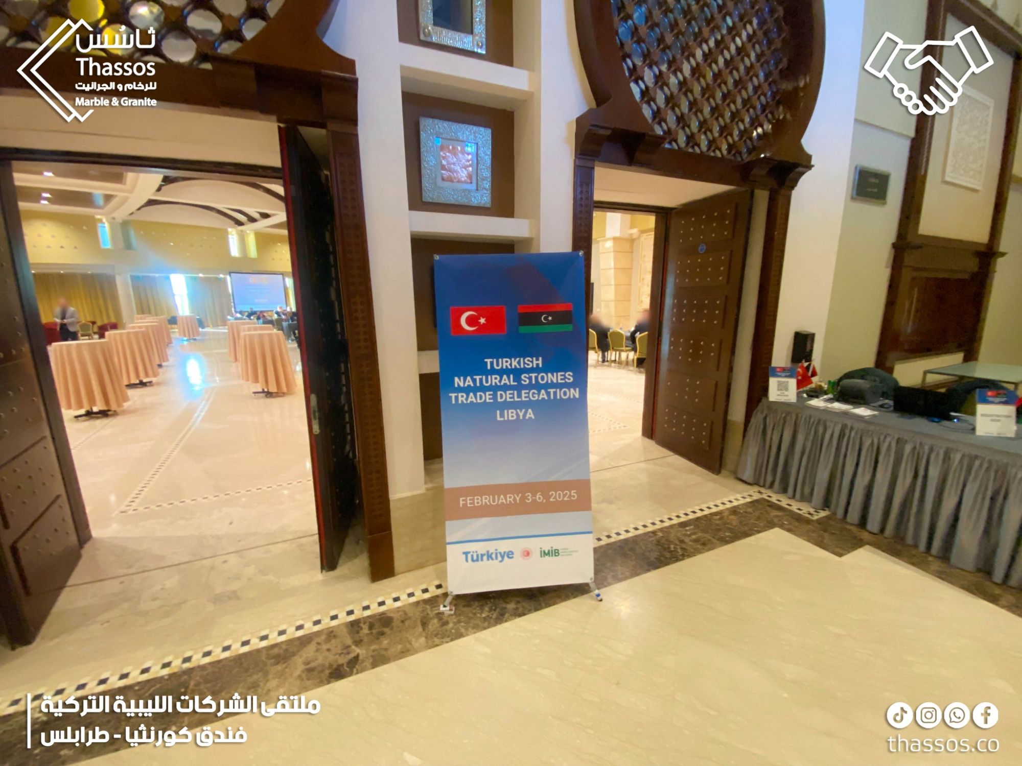 As part of our continuous pursuit of excellence and leadership in the world of marble and granite, Thass Marble and Granite Company was honored to meet with a group of the largest Turkish companies supplying marble and granite during the month of February 2025, at the Corinthia Hotel in Tripoli, as these companies have extensive experience in the field and their business extends to various parts of the world, including Libya.