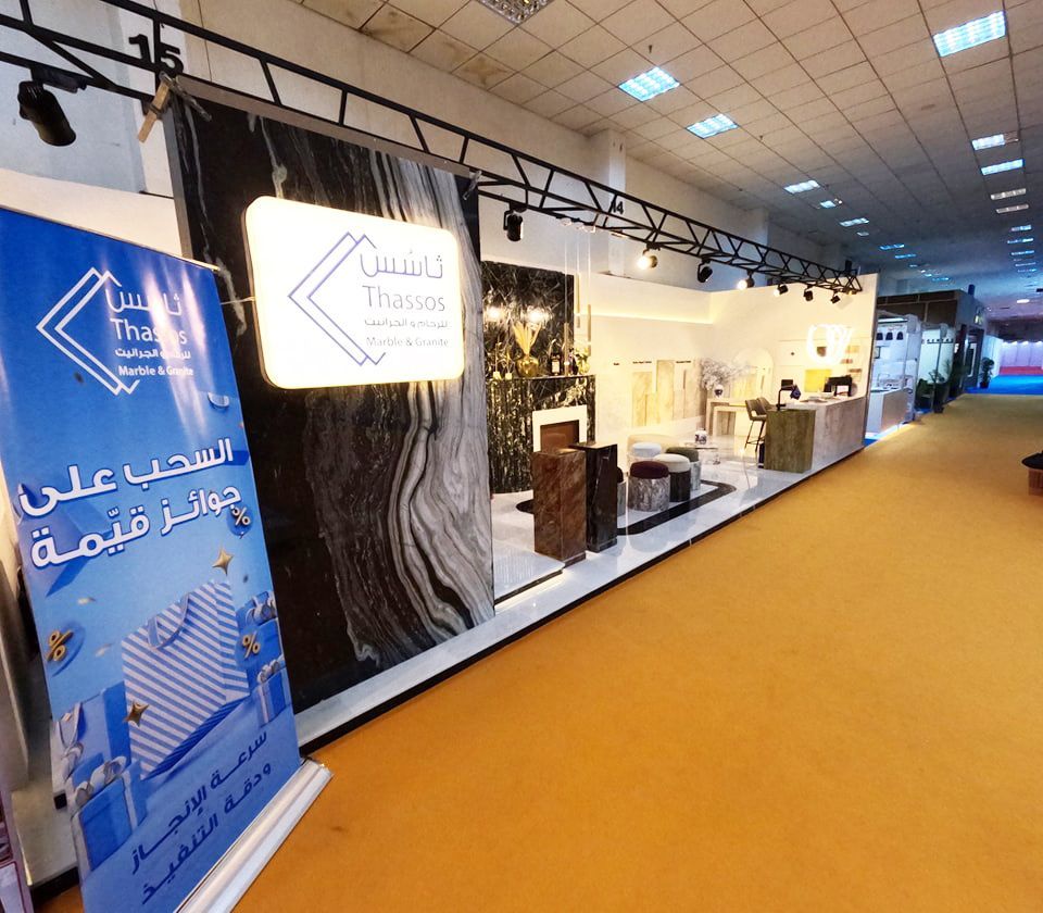 Thassos Marble and Granite Company participated in this exhibition at booth number 9C, Hall 58, showcasing the company's works and services in marble and granite industry, import, cutting, and interior and exterior decoration works. The participation included valuable prize draws throughout the exhibition period.