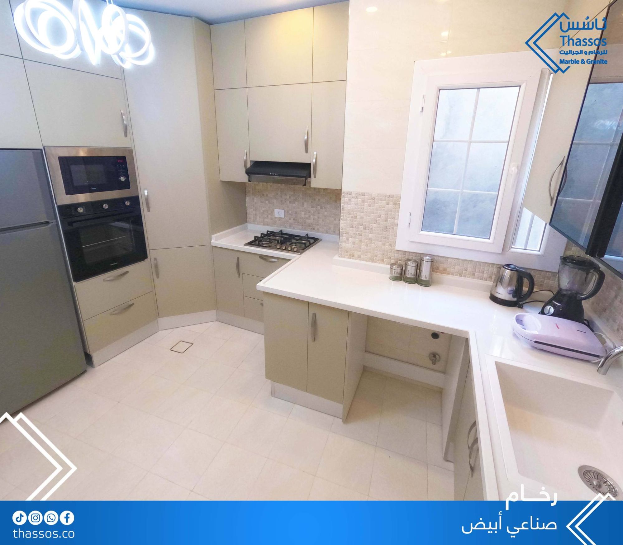 This panel includes White marble Quartz , "Sofia Grey" marble with its serene colors, and "Turkish Miron Light" marble with its delightful summer hues. We thank our valued client for choosing us to add beautiful touches to their elegant residence.